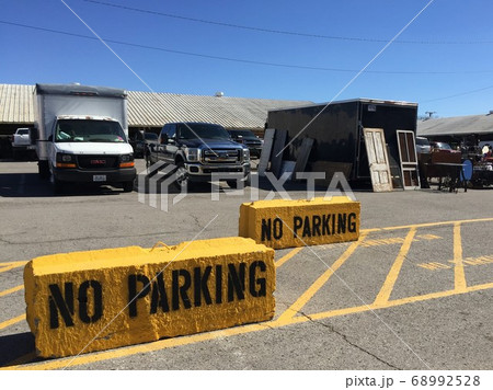 駐車禁止、駐車場にて/NO PARKING with American clunker