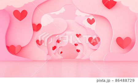 Valentine day background with tunnel and hearts paper cut design, 3d rendering