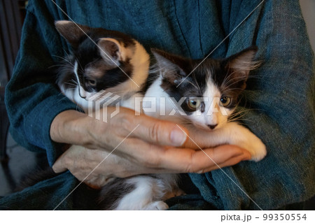 子猫を抱く女性