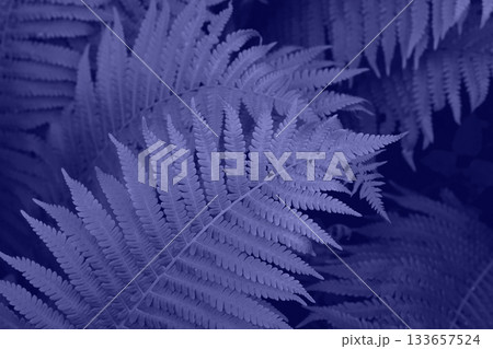 Very Peri beautiful view of fern plant in monochrome color. Forest very peri colored fern plants. Trendy color 2022. Very peri color background.