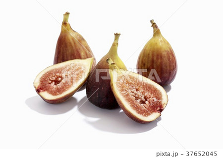 Fresh half fig and whole fruit on white background, Autumn fruit