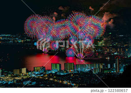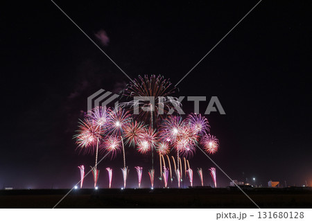 湖西市の湖西湖上花火大会の夜空に咲く打ち上げ花火(静岡県)
