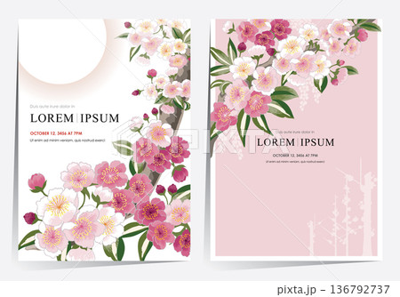 Vector Illustration Template Set of Plum blossoms in full bloom on branches