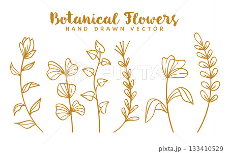 Gold line art leaves and flowers botanical decoration collection.Vector illustration
