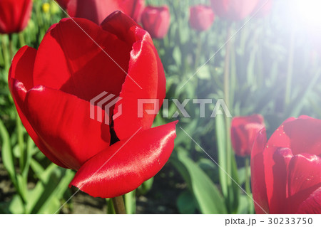 colorful bright beautiful red tulips closeup