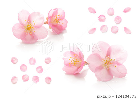 桜 花びら ピンク 春 白 背景 セット