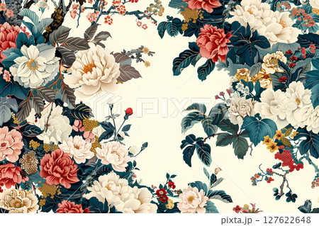 アンティークな和柄の花のテクスチャー