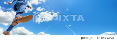 女子旅 キャリーバックを持って青空のもと歩いている若い女性