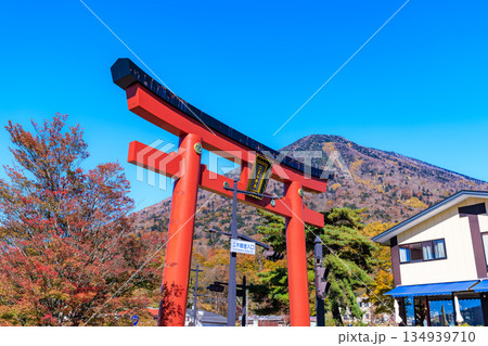 栃木県 日光市 秋の男体山と二荒山神社 大鳥居