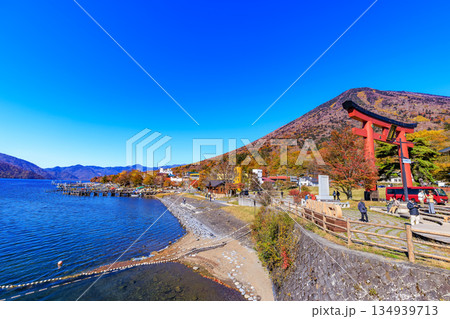 栃木県 日光市 秋の中禅寺湖と中禅寺参道