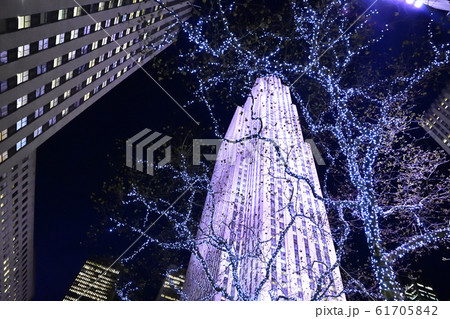 ライトアップされたロックフェラーセンター「GEビルディング」