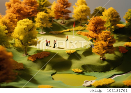 秋のゴルフ場(3D)ジオラマ