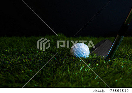 ゴルフボール 芝生 黒背景イメージ素材