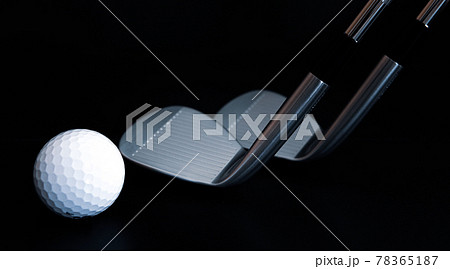 ゴルフクラブ アイアン 黒背景イメージ素材