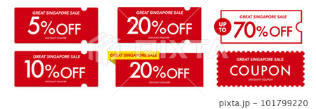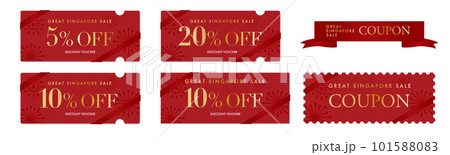 グレートシンガポールセールに使えるシンプルな赤のクーポンベクターアイコンセット
