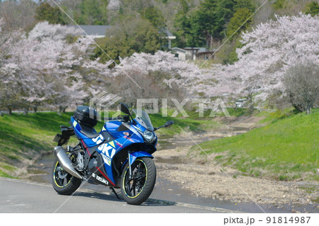 桜とバイク