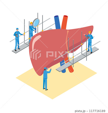 肝臓のメンテナンスをする作業員のイメージイラスト