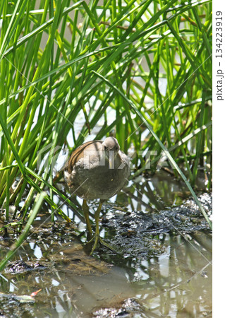 バンの幼鳥 バン 鷭 Gallinula chloropus 北海道の野鳥
