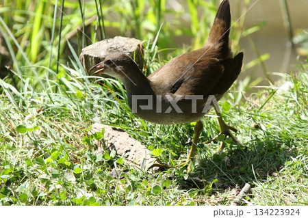 バンの幼鳥 バン 鷭 Gallinula chloropus 北海道の野鳥