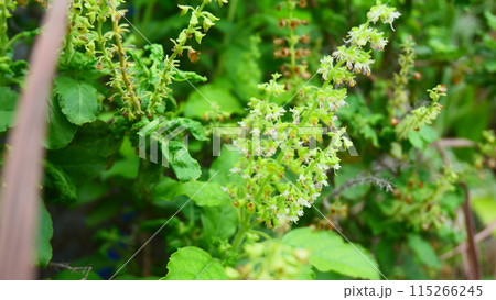 holy basil flower and green leaves in the garden
