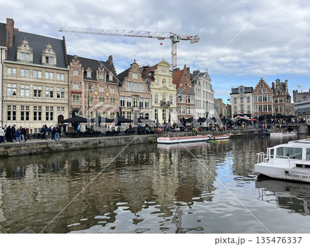 Ghent, Belgium. Graslei channel view, Leie River, Flanders.