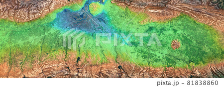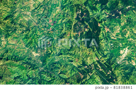Pattern of terrain on satellite photo, Earth from space. Aerial