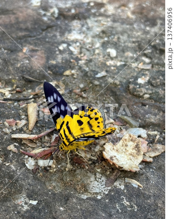 Vibrant Yellow and Black Spotted False Tiger Moth Dysphania militaris on Ground