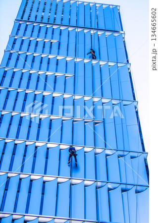 日本の東京都市景観年の瀬の銀座に…“忍者”出現!。ビルの窓ガラスの清掃…年末大掃除…=23日