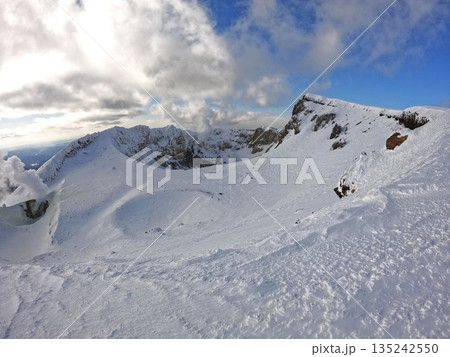 冬季鳥海山頂上からの笙ヶ岳方面の稜線