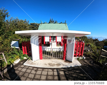 冬季鳥海山の新山と雪に覆われた大物忌神社
