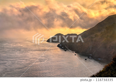 Sunset at Marin Headlands at Golden Gate National Recreation Area near San Francisco in California, United States