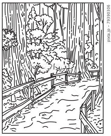 Towering Old-Growth Redwoods in Muir Woods National Monument Part of Golden Gate National Recreation Area California United States Mono Line or Monoline Black and White Line Art