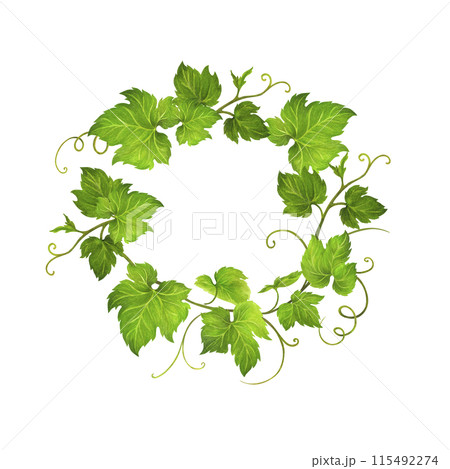 Watercolor wreath of grape leaves and tendrils for wedding invitation or greeting card design, vineyard celebration decor, menus, labels for wine and wine vinegar. Isolated hand drawn illustration