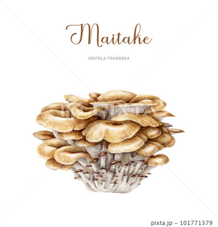 Maitake mushroom fresh bunch. Watercolor illustartion. Hand drawn Grifola frondosa fungus element. Maitake mushrooms eatable and medicinal fungi. Isolated on white background