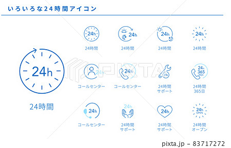 24時間対応のシンプルなベクターアイコンイラスト素材