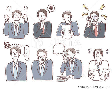 スーツの男性、ビジネスマン、詰め合わせ (泣く、テレアポ、怒る、クレーム、パワハラ)