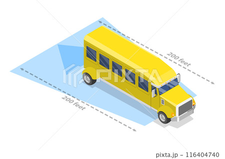 3D Isometric Flat Vector Illustration of School Bus Blind Spot Area