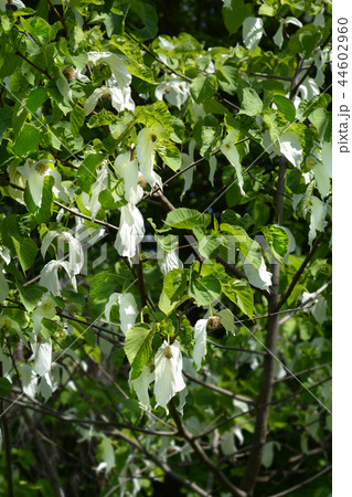 二枚の苞葉が白いハンカチのようなミズキ科のハンカチノキ