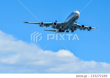 【東京都】羽田空港の風景 着陸姿勢に入った旅客機
