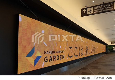 Sign at Haneda Airport Garden in Tokyo, Japan. April 10, 2023