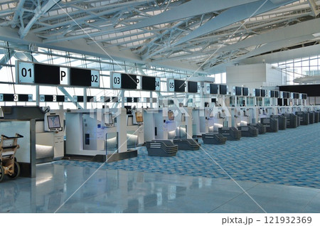 【イメージ素材】国際空港チェックインカウンター付近の風景