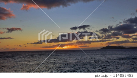 ダイアモンドヘッドと夕陽 Hawaii 海に沈む夕日