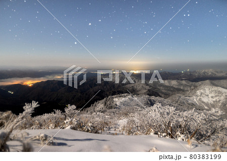兵庫県最高峰、氷ノ山 山頂から雪上の星空(兵庫県養父市大屋町横行)※作品コメント欄に撮影位置
