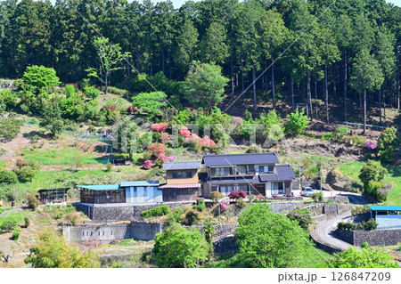 急斜面の緑地 新緑の里山 花桃の里 東秩父村