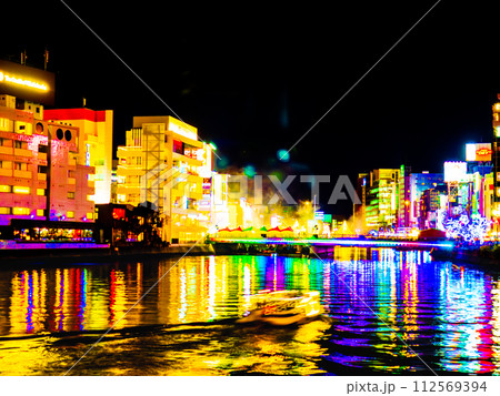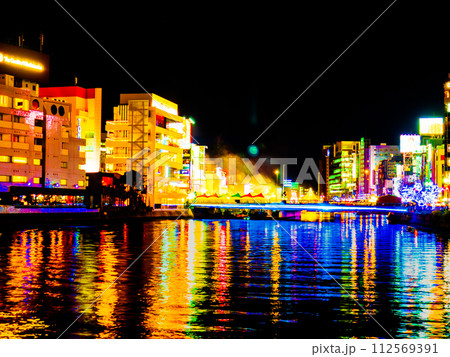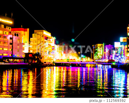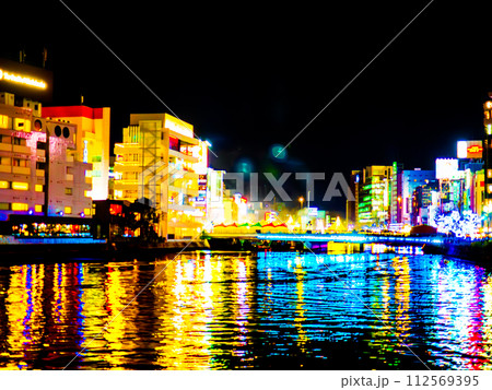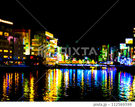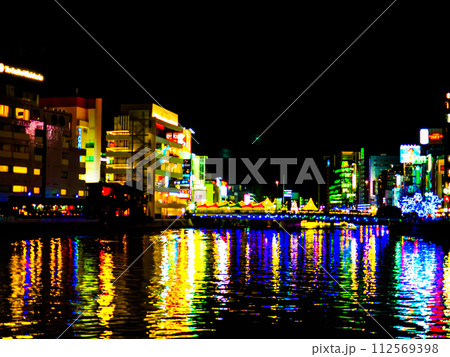 福岡市中洲の清流公園から撮影した福博であい橋上の「ナカス ヒカリノ アドベント」のイルミネーション