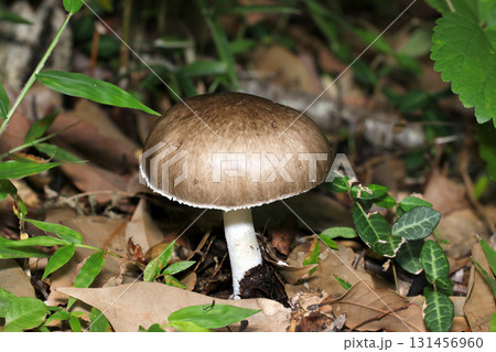 秋の雨後落葉土壌に立派な風格のコテングタケモドキキノコ(横位置全体象・自然下菌キノコ類マクロ撮影)