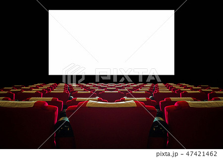 Cinema hall with red seat and wide white screen