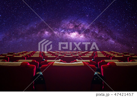 Cinema hall with red seat in Milky way galaxy.