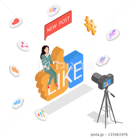 3D Isometric Flat Vector Illustration of Digital Marketing, Blogging, Social Media