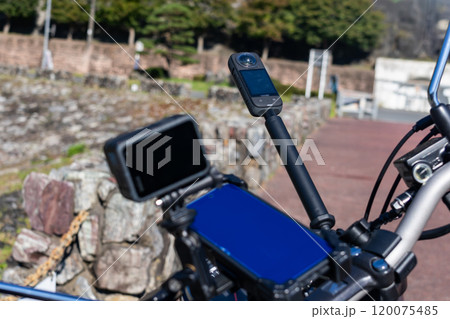 動画撮影機器を載せたオートバイ